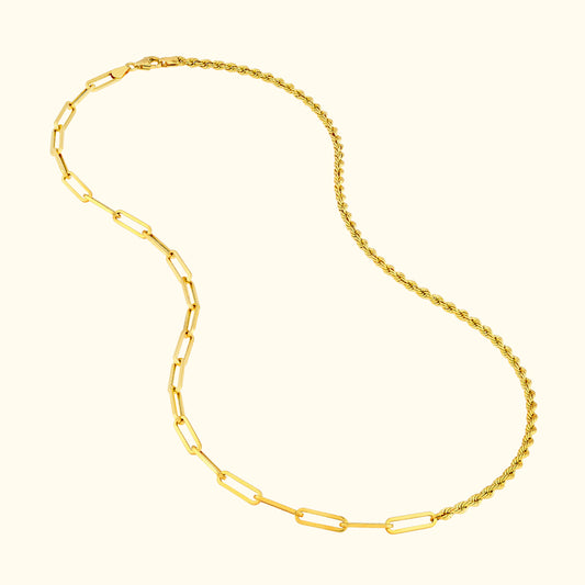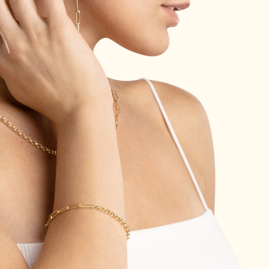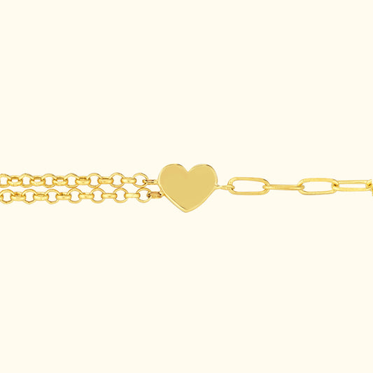 50/50 Paper Clip + Double Rolo Heart Bracelet