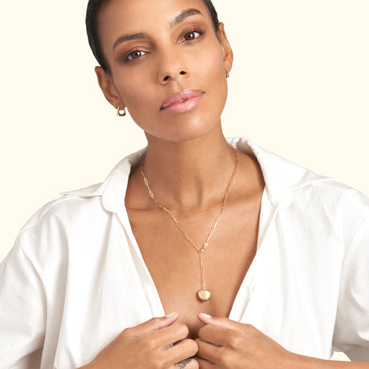 Puffed Heart Paperclip Lariat Necklace