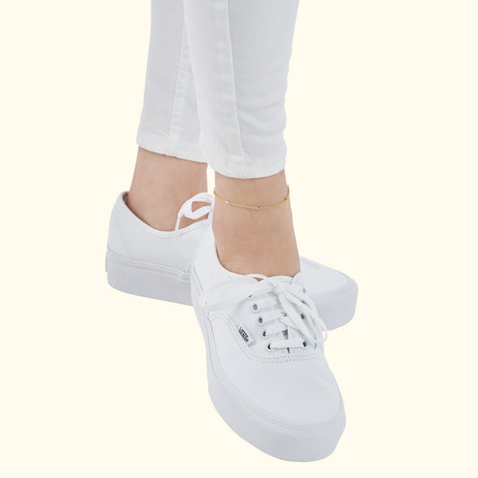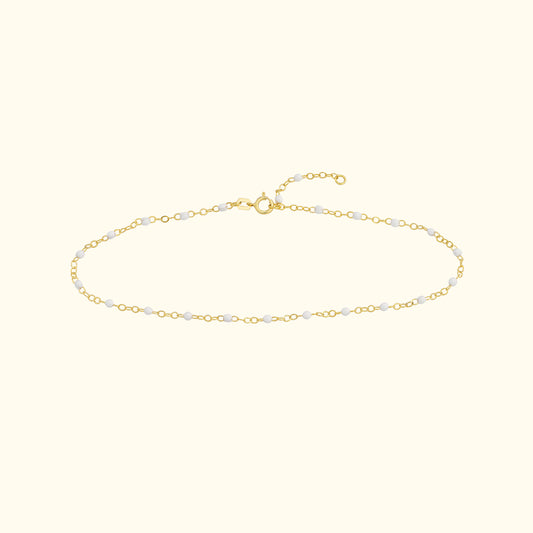 Two-Tone D/C Bead Station Rolo Chain Anklet