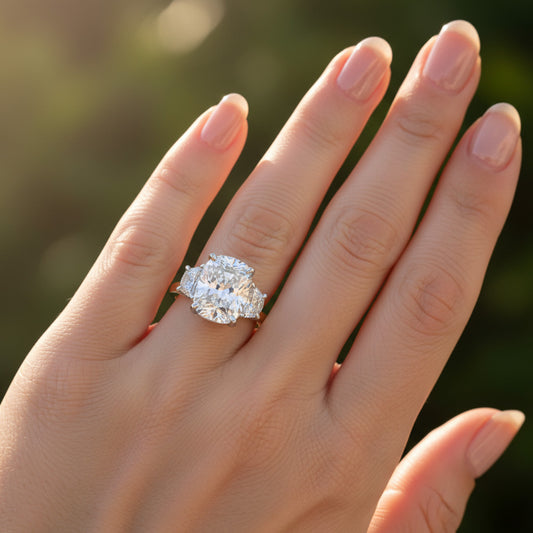 The best engagement ring setting depends on your lifestyle and style preference. A solitaire is the most popular choice for its simplicity and durability — the prong setting keeps the diamond secure while maximizing light exposure. A halo setting is ideal if you want maximum sparkle on a given budget, as the accent diamonds make the center stone appear larger. For a meaningful design, a three-stone setting represents your shared past, present, and future together. If you prefer modern elegance, consider a hidden halo — the accent diamonds are tucked beneath the center stone for subtle brilliance visible only from certain angles.