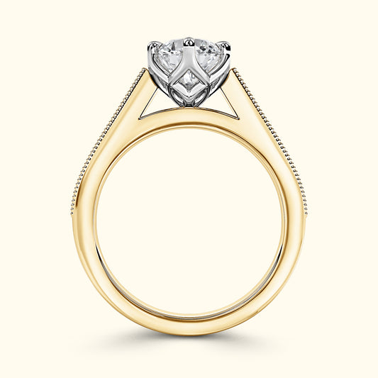 Choose a cathedral-style ring with sophisticated design elements such as a raised setting or graceful arches inspired by the grand ceilings of traditional cathedrals. Each engagement ring in this category is meticulously crafted, offering peace of mind through secure prong and pavé settings that reduce the risk of damage or loss.