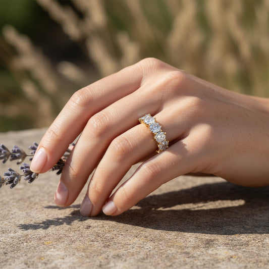 14KY 5 Stone Hexagon Cut Diamond Ring