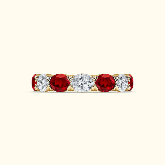'Jasmine' Oval Cut Ruby and Diamond Eternity Wedding Band