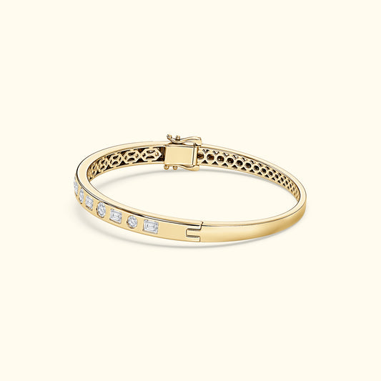 Bezel Set Emerald and Round Mixed Diamond Bracelet