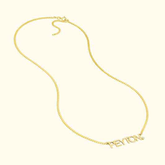 Block Nameplate Curb Chain Necklace with Diamond