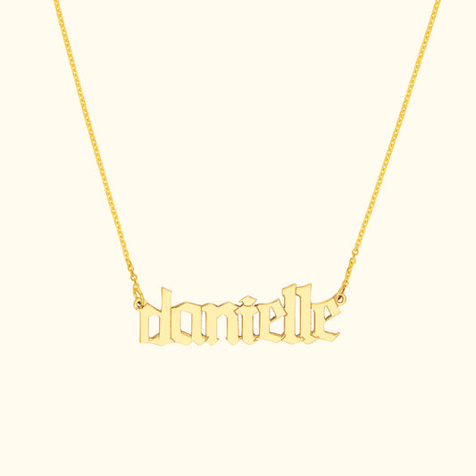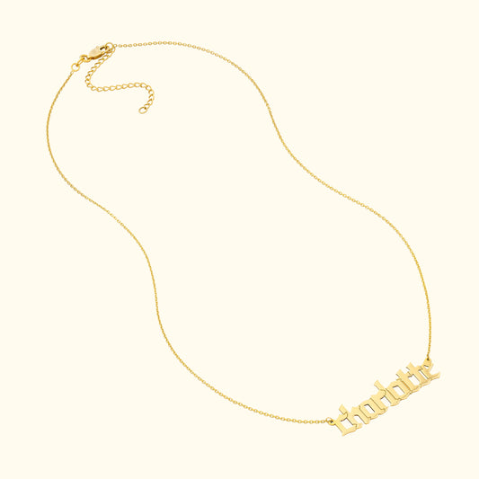 Gothic Gold Nameplate Necklace - Bold Style