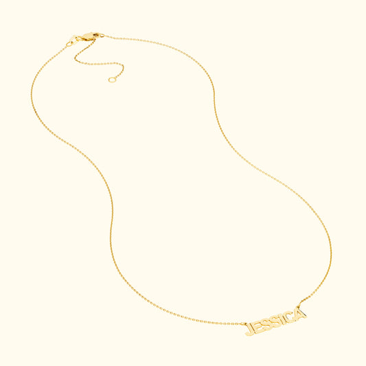 14K Gold Brush Nameplate Necklace - Adjustable Chain