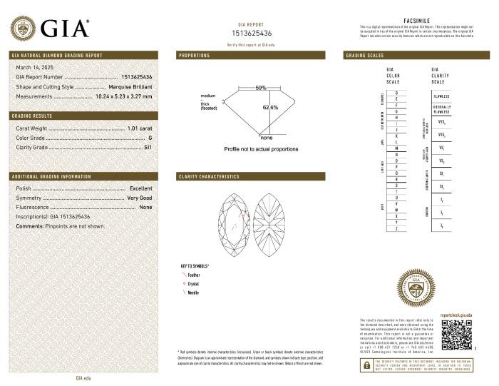 1.01 ct GIA Marquise G/SI1 Mined