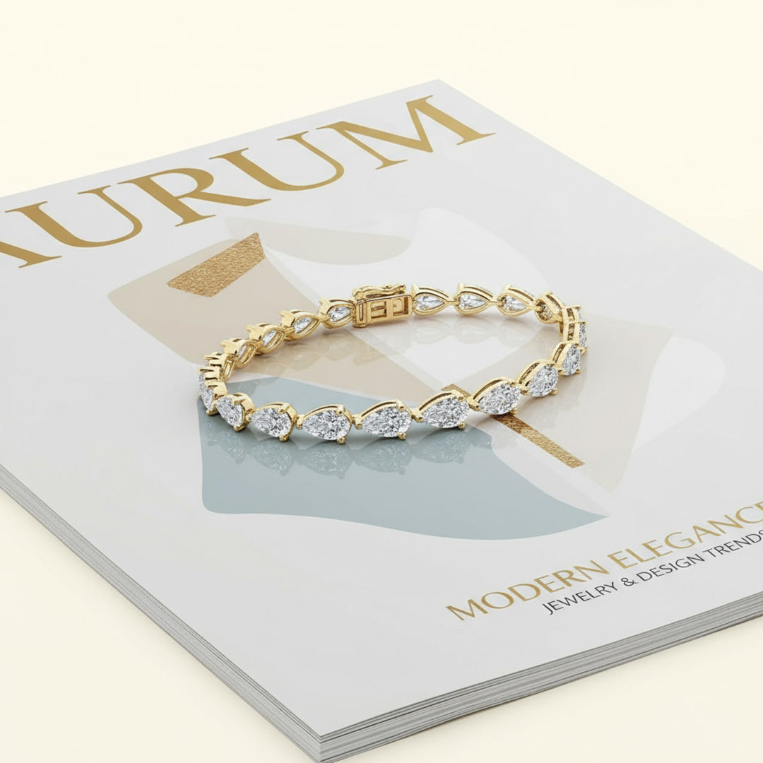 This exquisite diamond tennis bracelet features a continuous line of dazzling pear-shaped diamonds, expertly set to create a sophisticated and elegant design. The unique shape of each diamond adds a touch of grace and brilliance, making it the perfect accessory for any occasion, whether worn alone or stacked with other pieces.