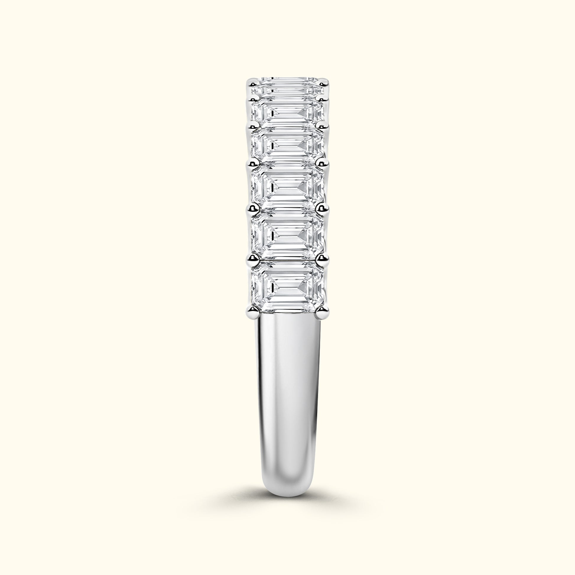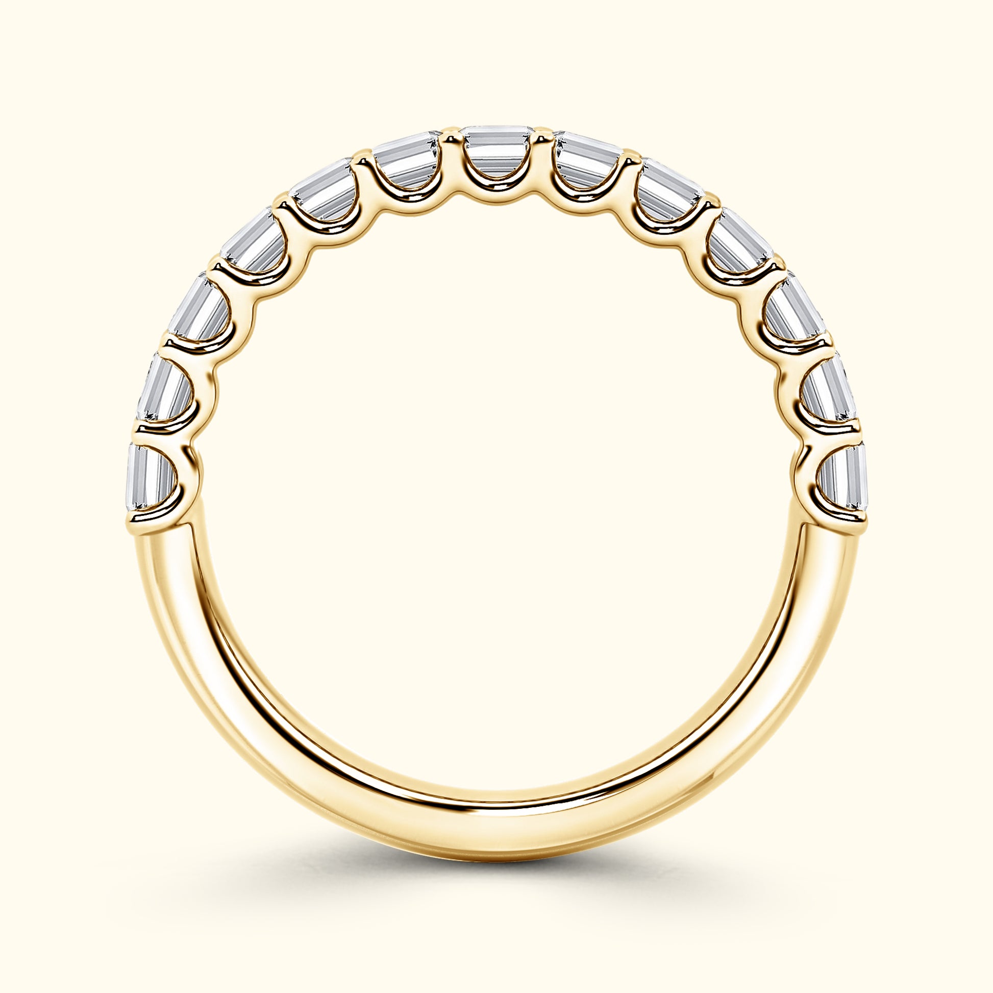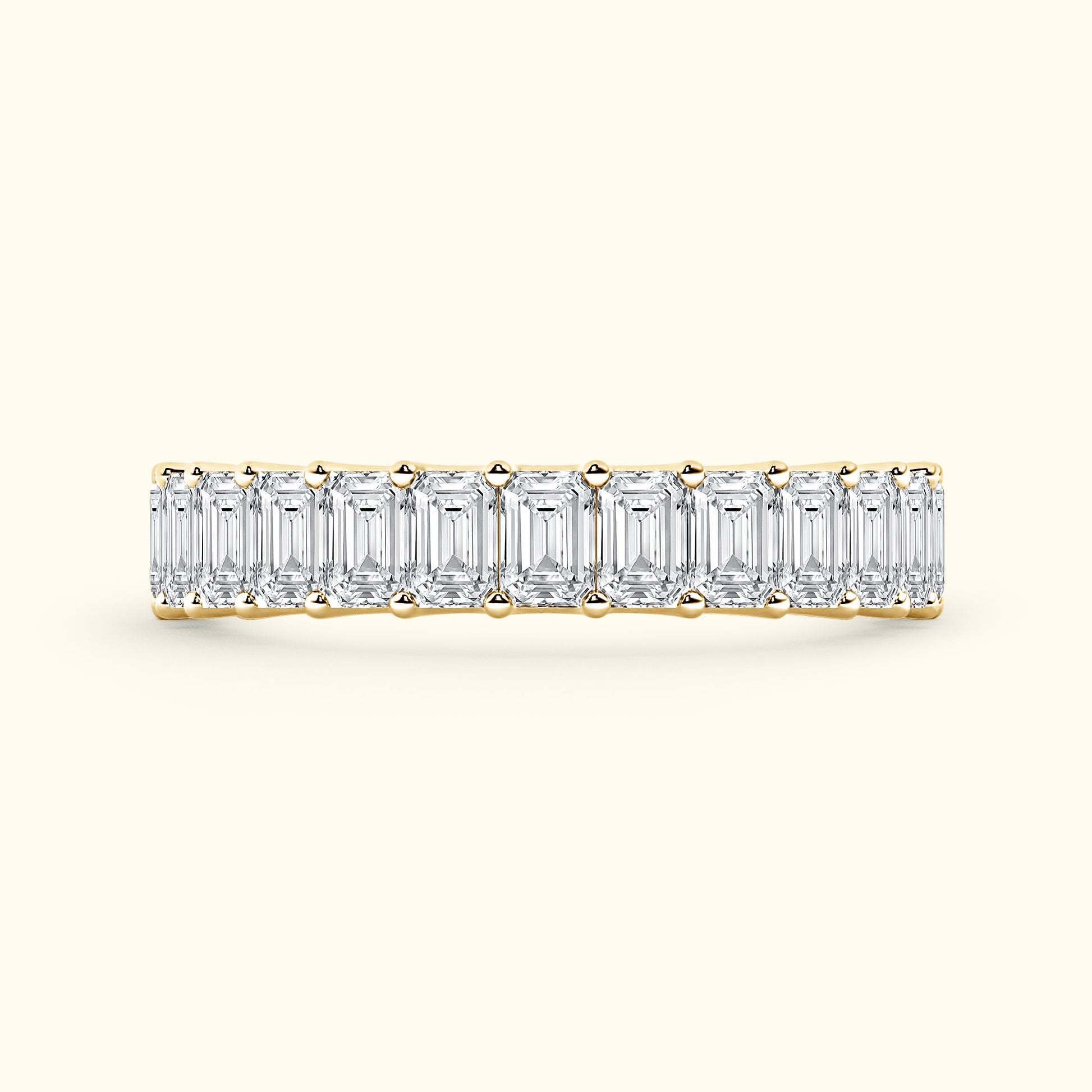 This sleek 13-stone diamond band features emerald-cut diamonds in a seamless row, offering refined geometric sparkle and a mirror-like shine in polished gold, totaling 3.00 carats.