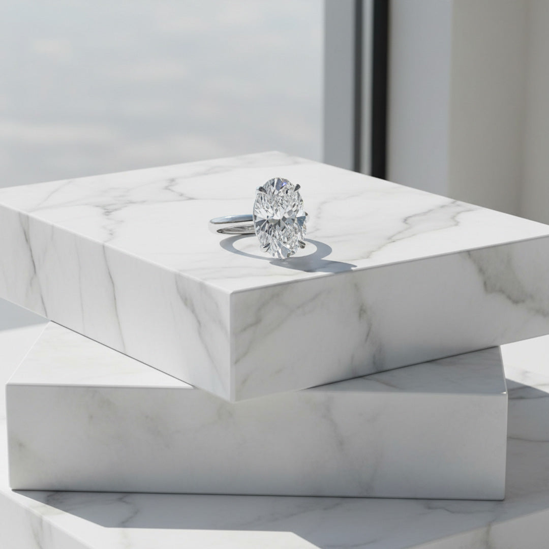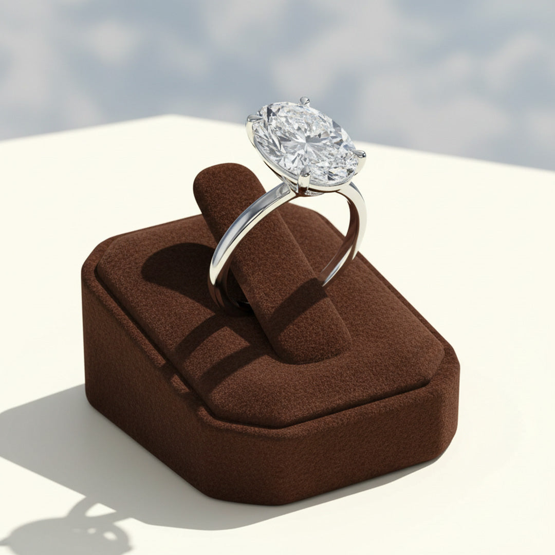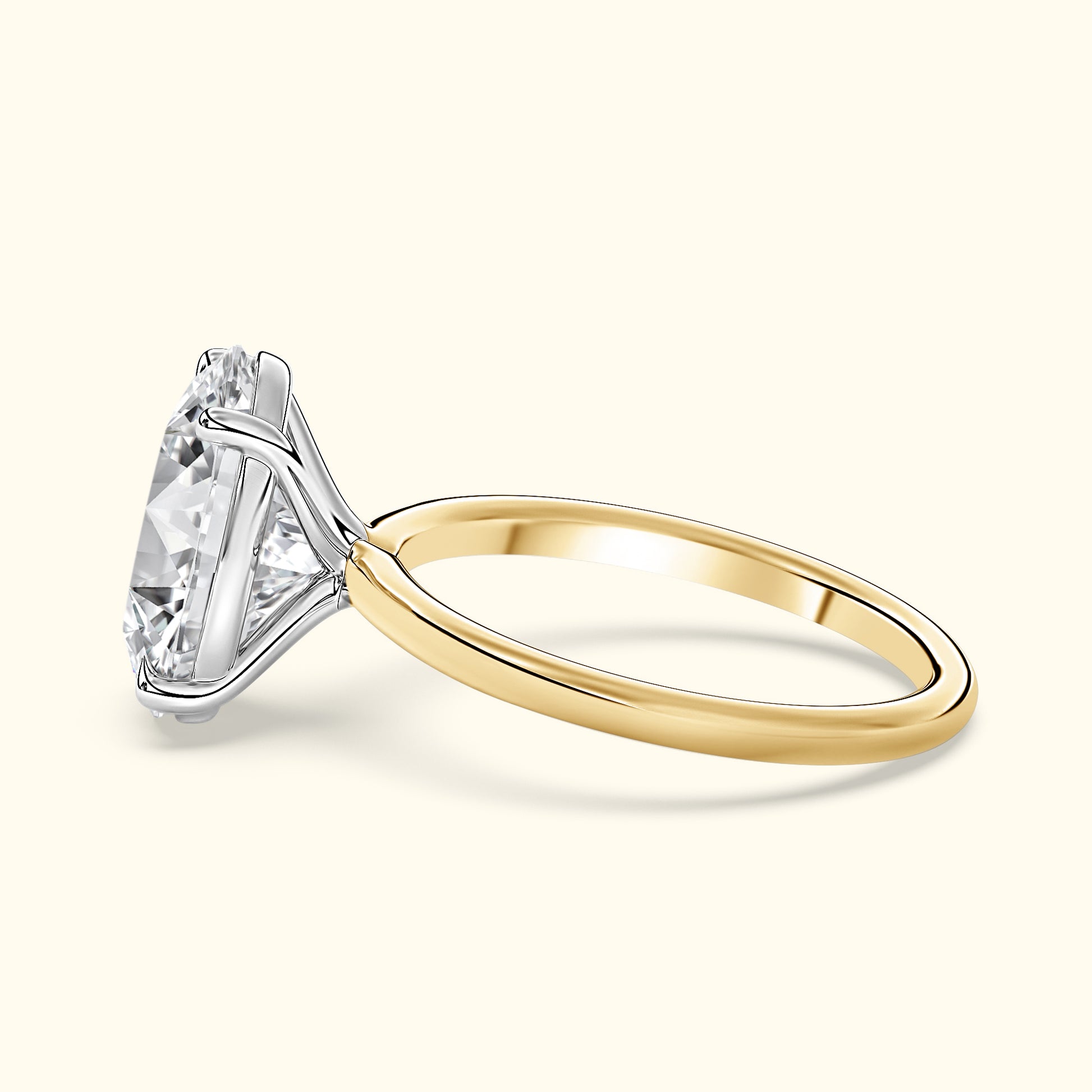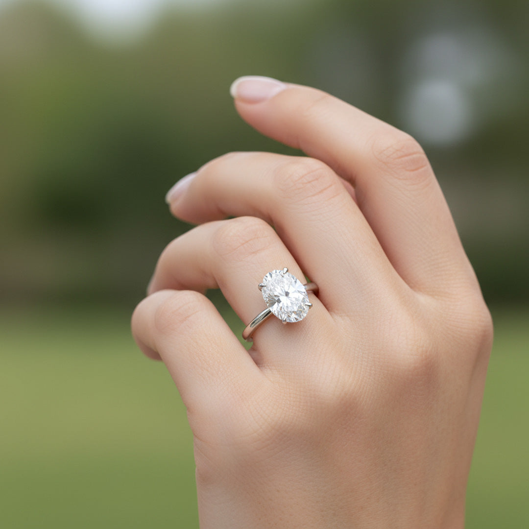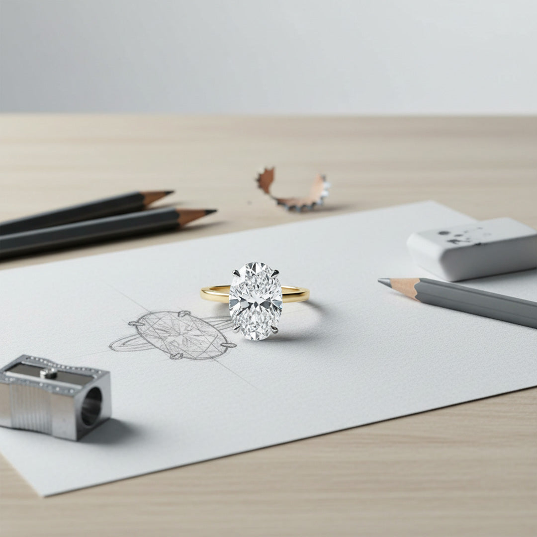 A timeless oval-cut diamond set on a sleek yellow gold band. Elegant, classic, and designed to shine from every angle.