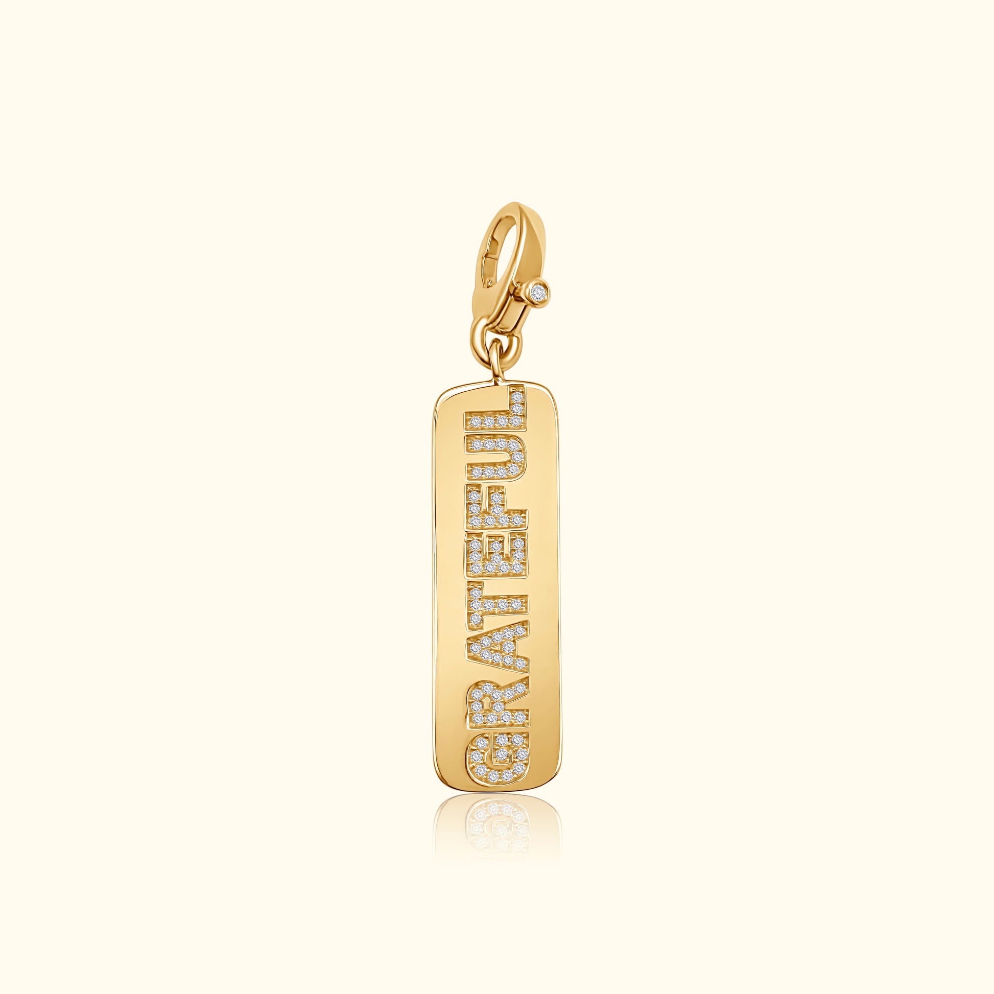 Shine with gratitude—our Diamond Dog Tag Pendant spells out grateful in sparkling diamonds, serving up good... Show more
