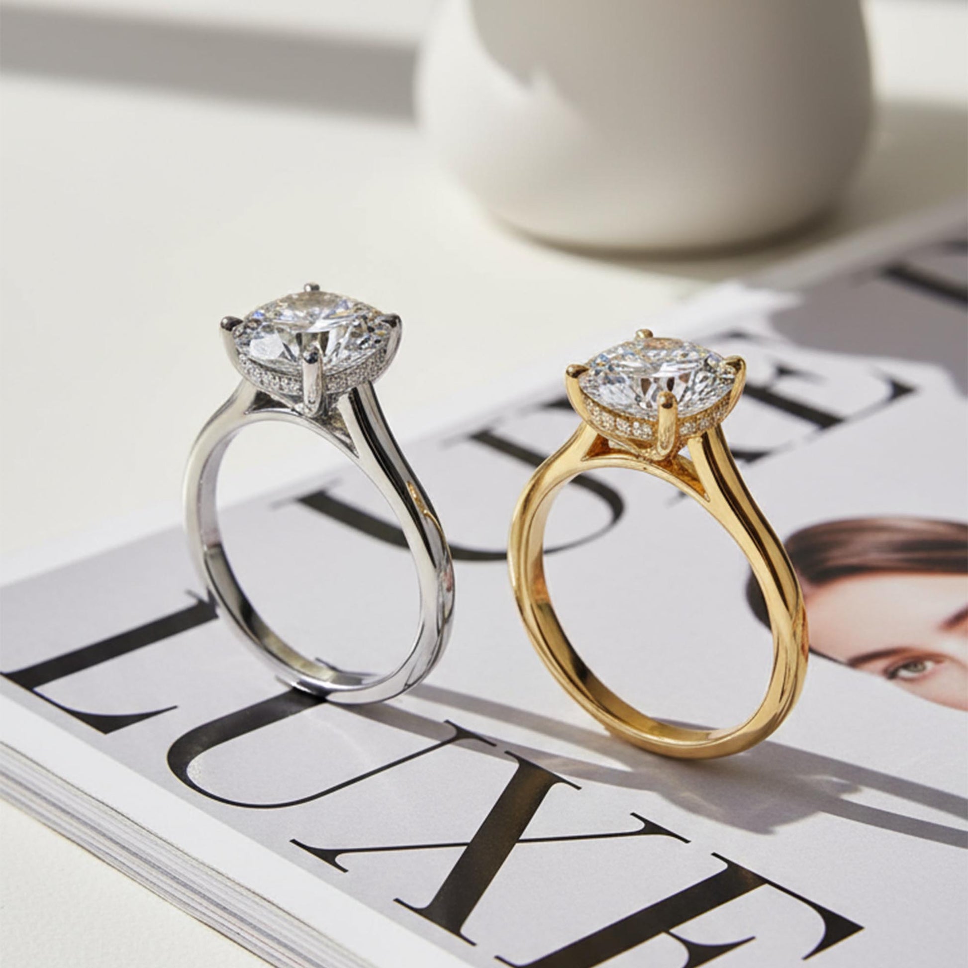 All rings include a GIA or IGI certified diamond and a free gemologist appraisal. Our expert team inspects every diamond’s authenticity by verifying the laser inscription on the girdle or other gemological testing standards before shipping.