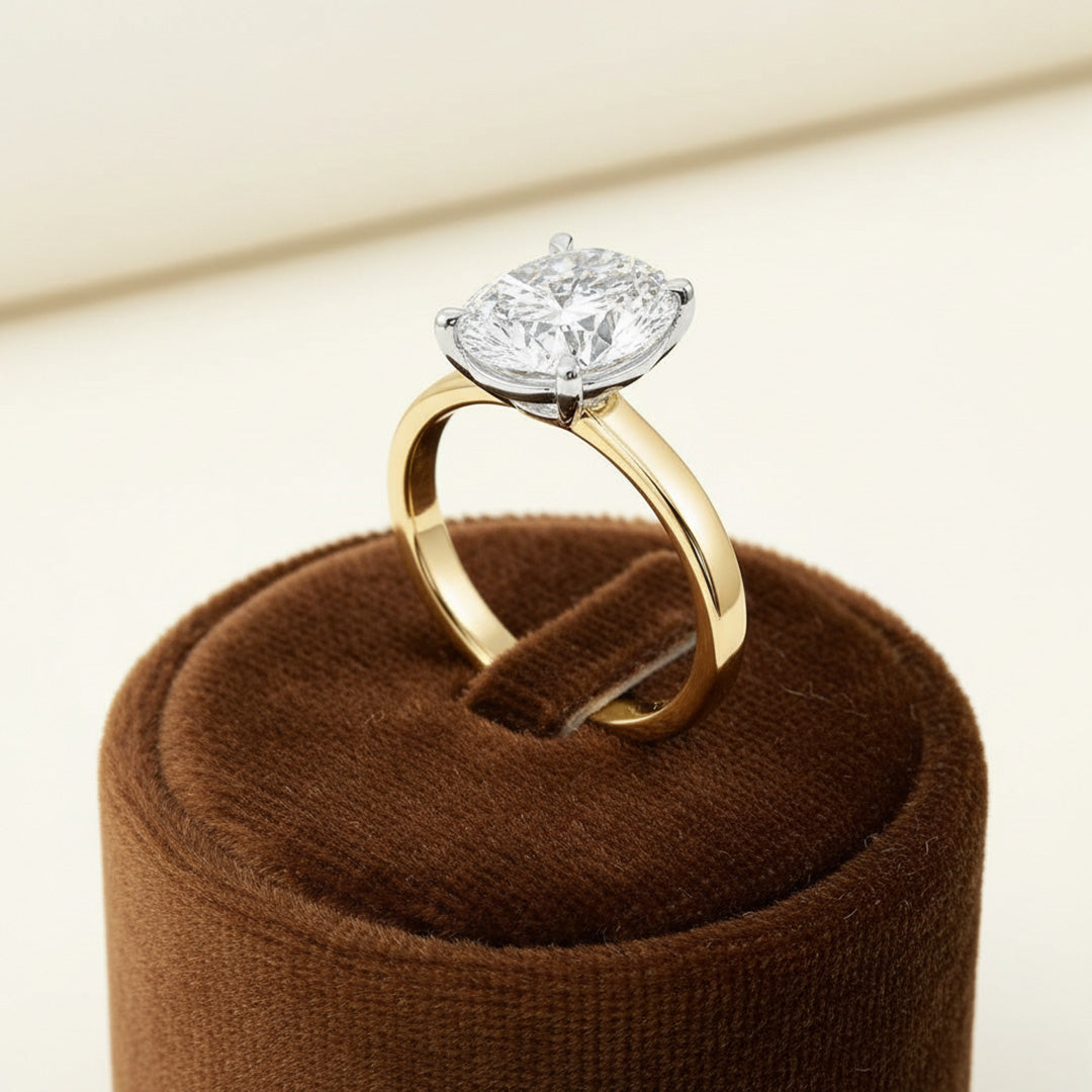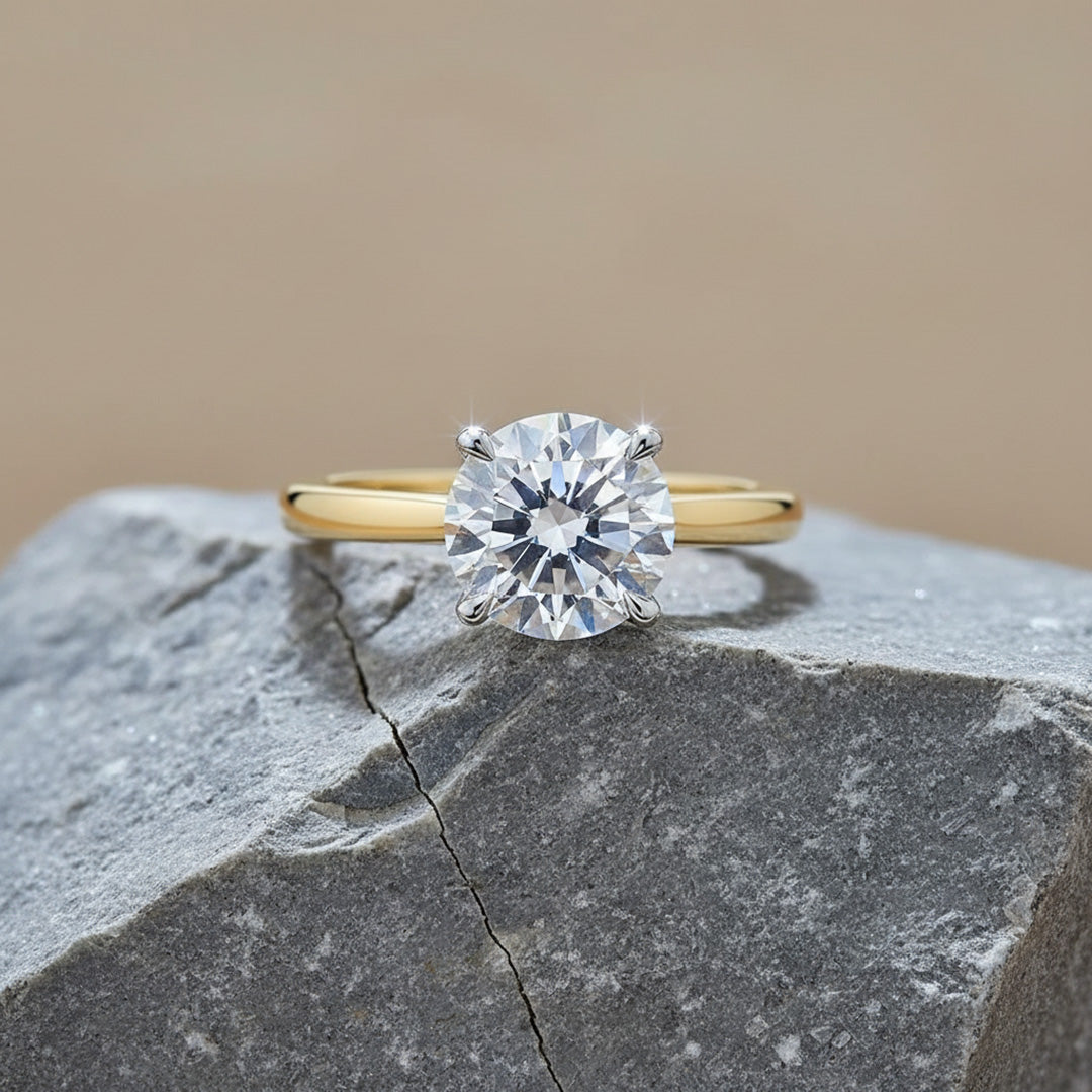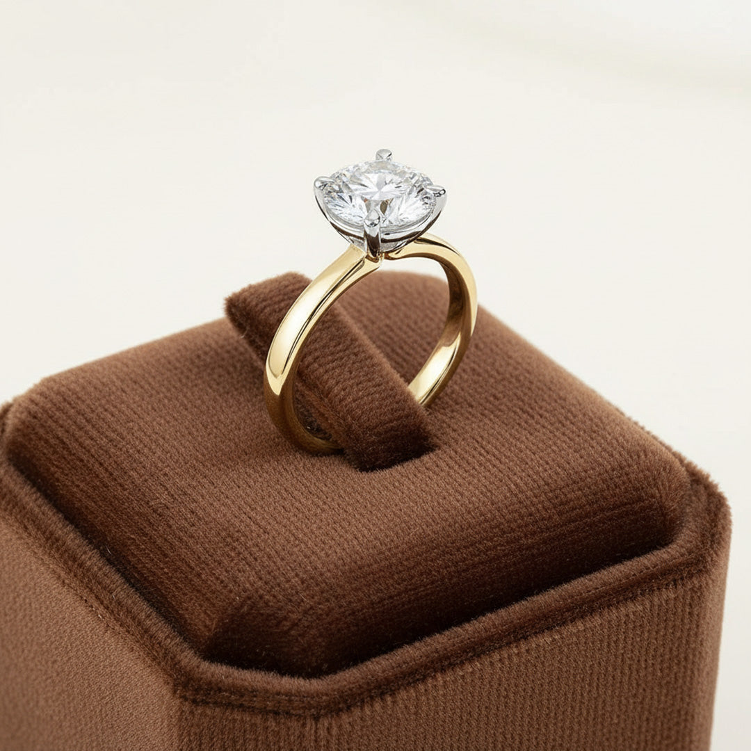 A classic solitaire with your choice of diamond shape—round, princess, oval, and more—set on a polished band for simple, meaningful elegance.