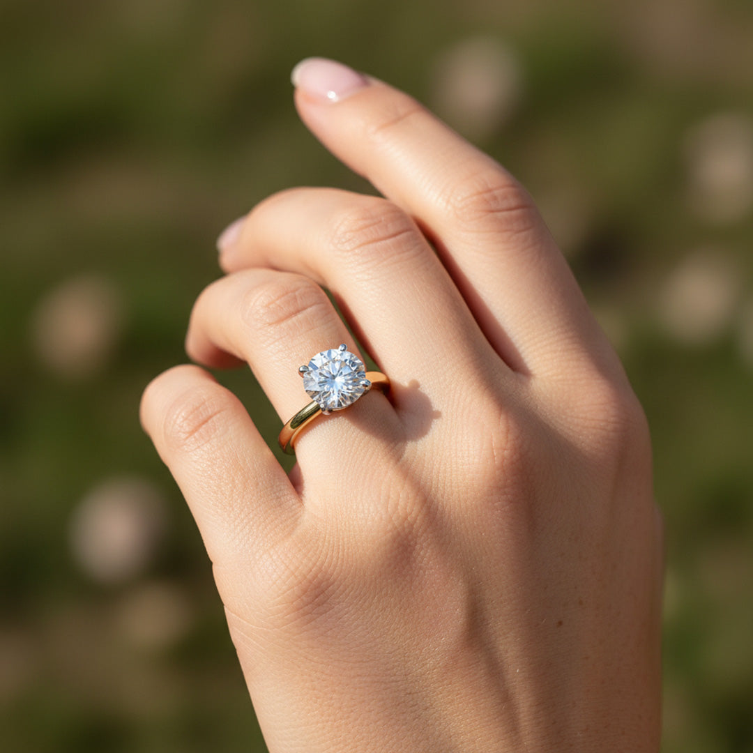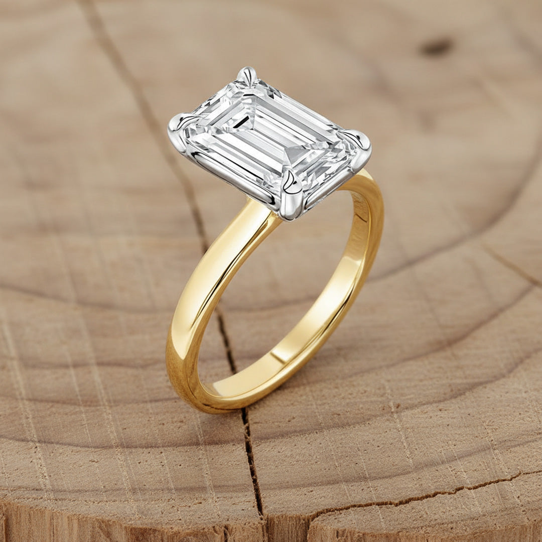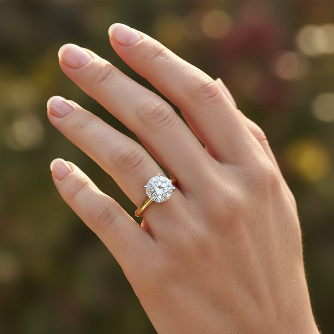 A classic solitaire with your choice of diamond shape—round, princess, oval, and more—set on a polished band for simple, meaningful elegance.