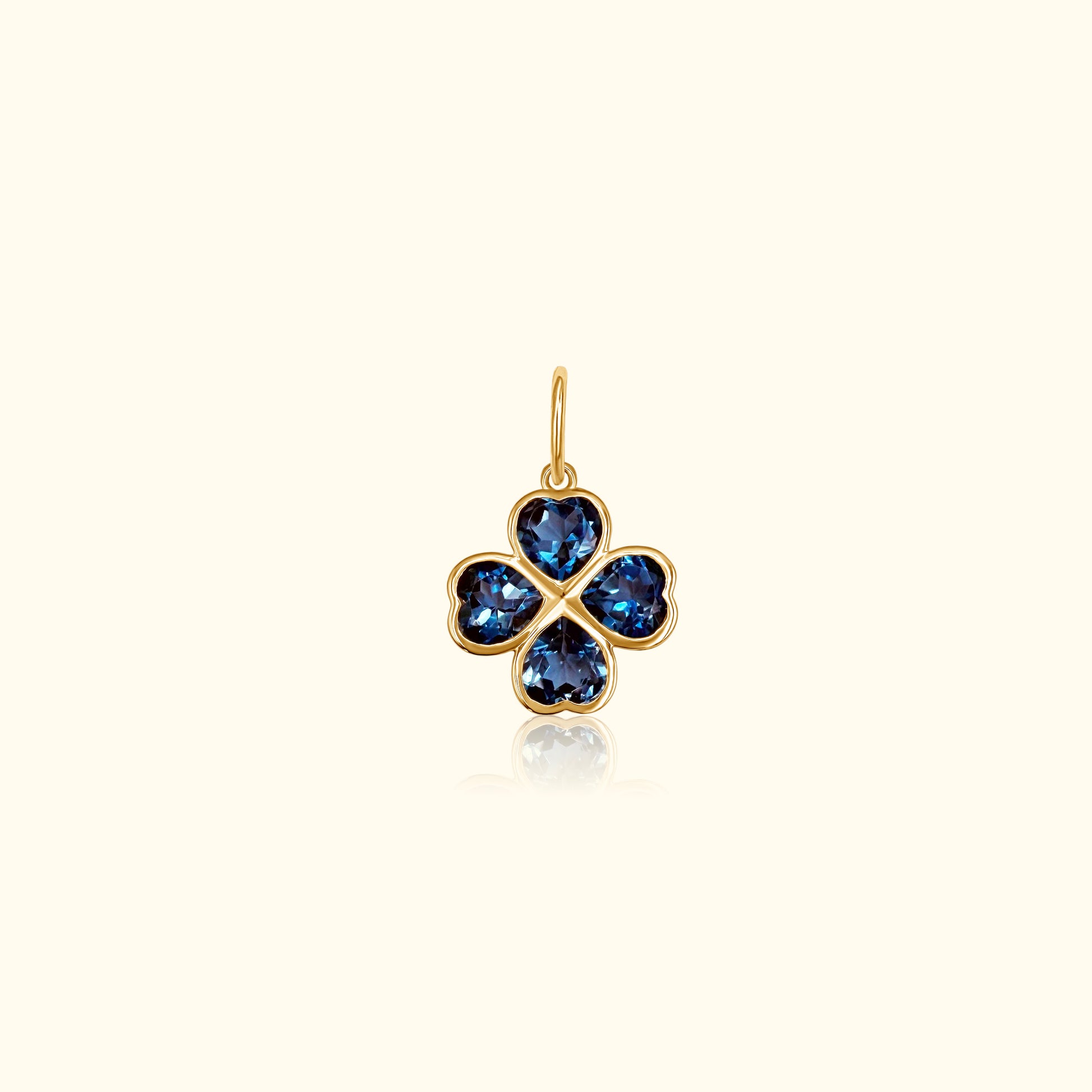 Luck just got luxe—our London Blue Topaz Clover Pendant stuns with deep, moody blue stones in a chic clover shape. London blue topaz is known for its calming energy and ability to inspire clear, confident communication—perfect for speaking your truth in style.
