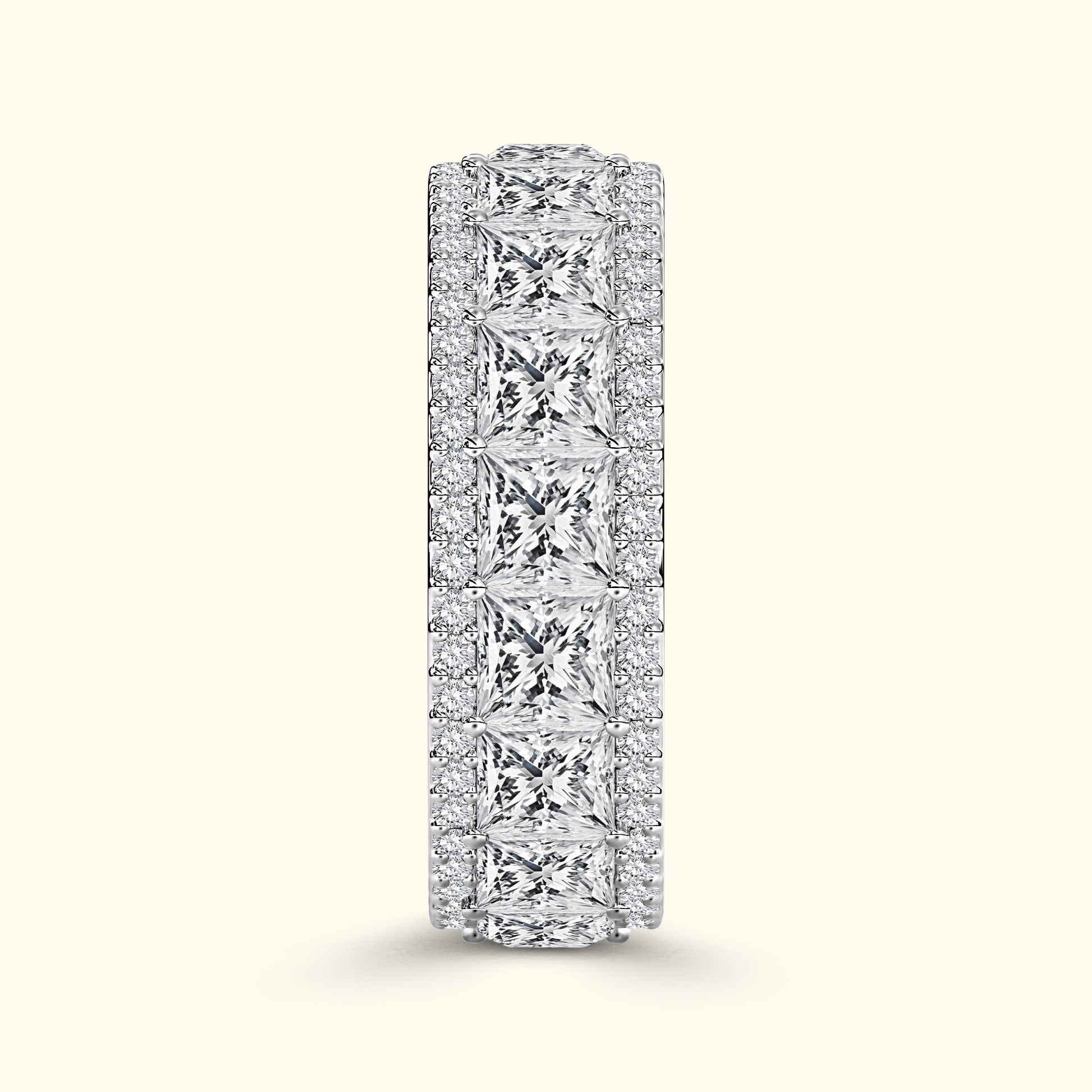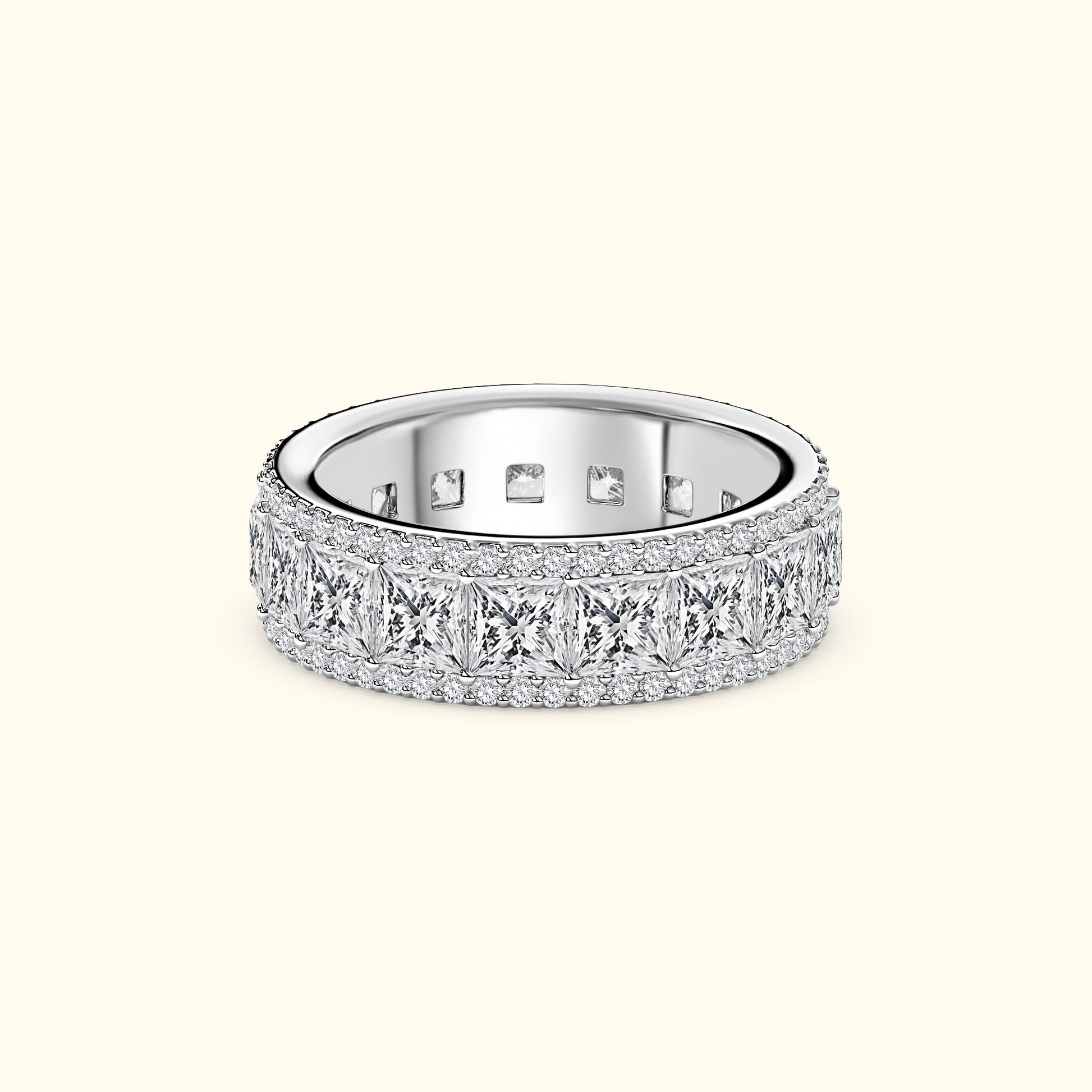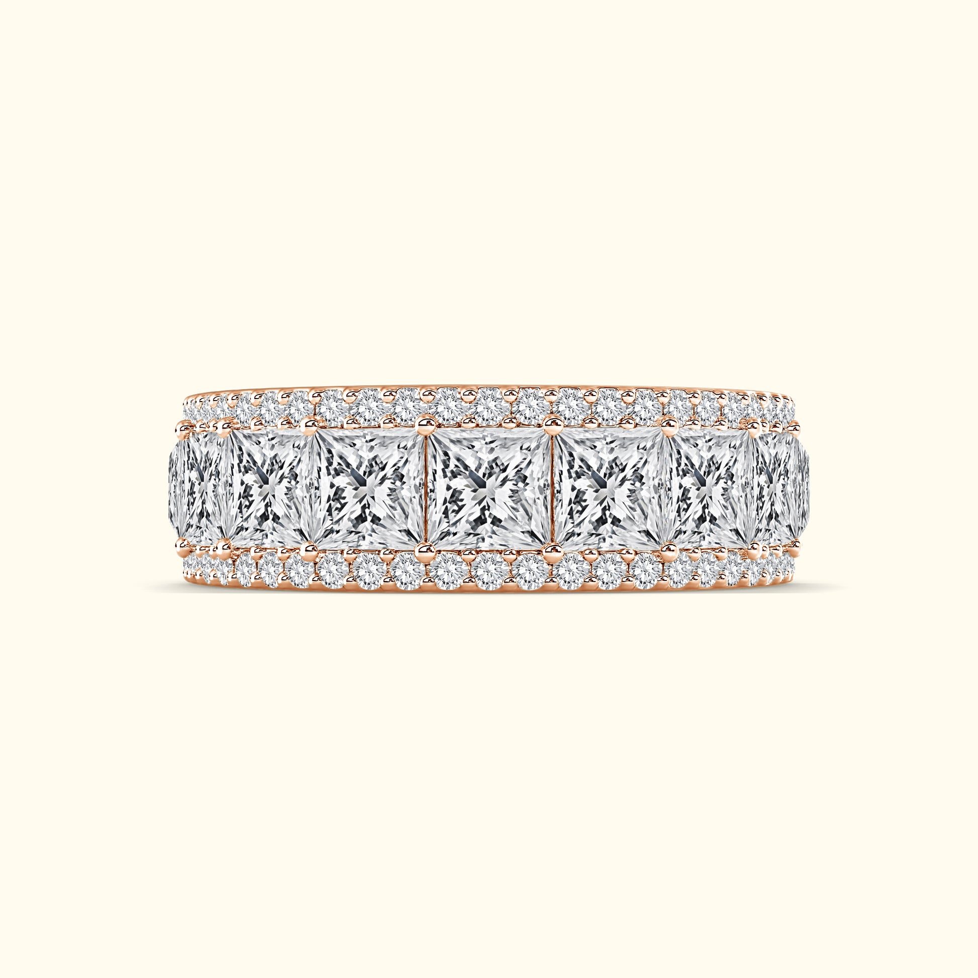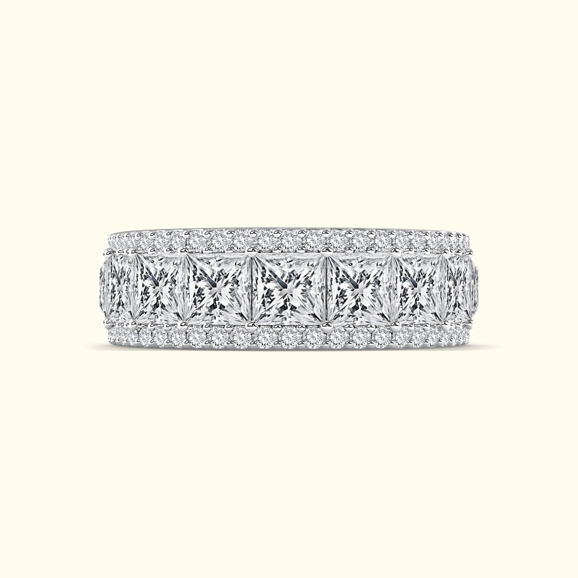 This modern band features a channel setting with princess-cut and round diamonds, combining clean lines with radiant brilliance for a total of 3.00 carats.