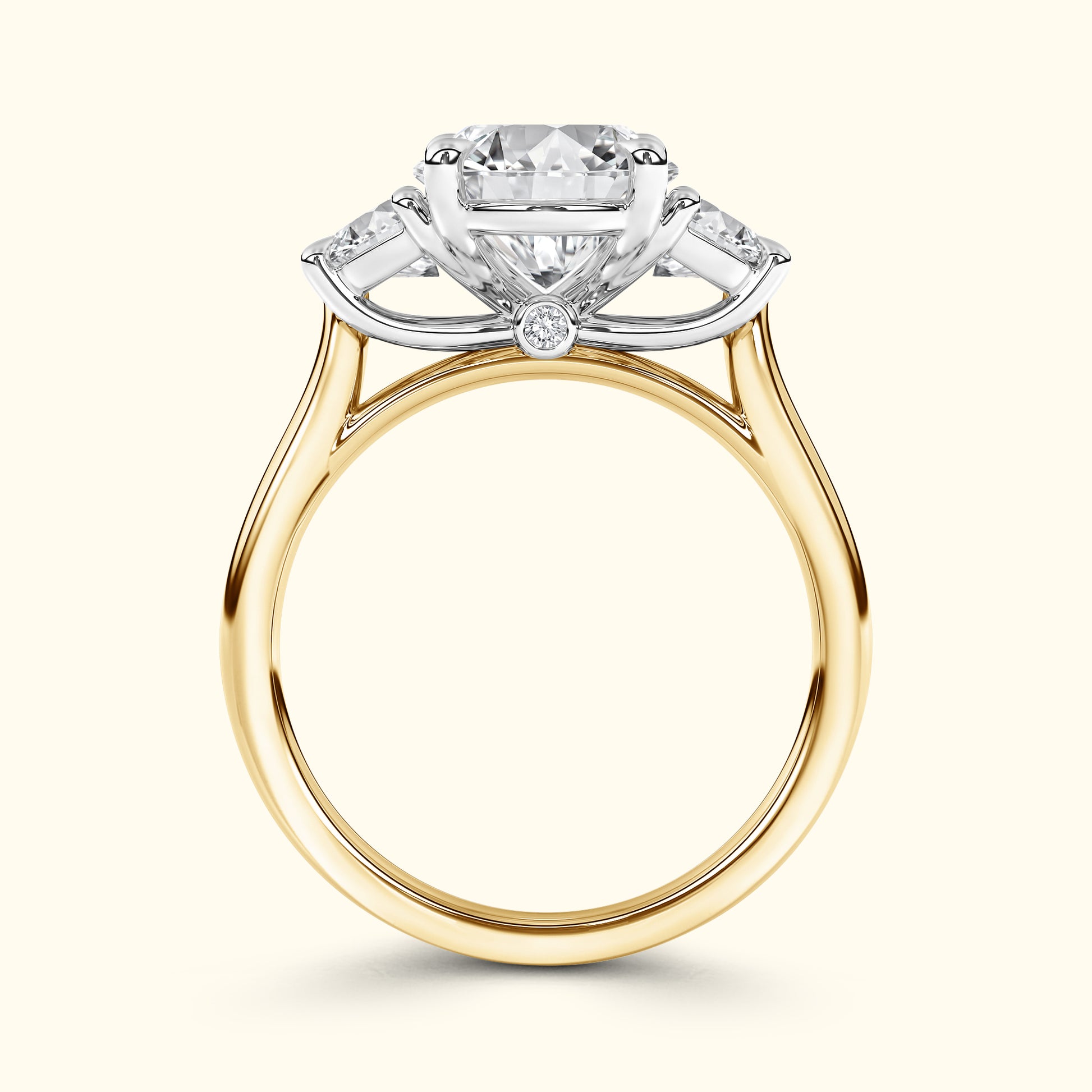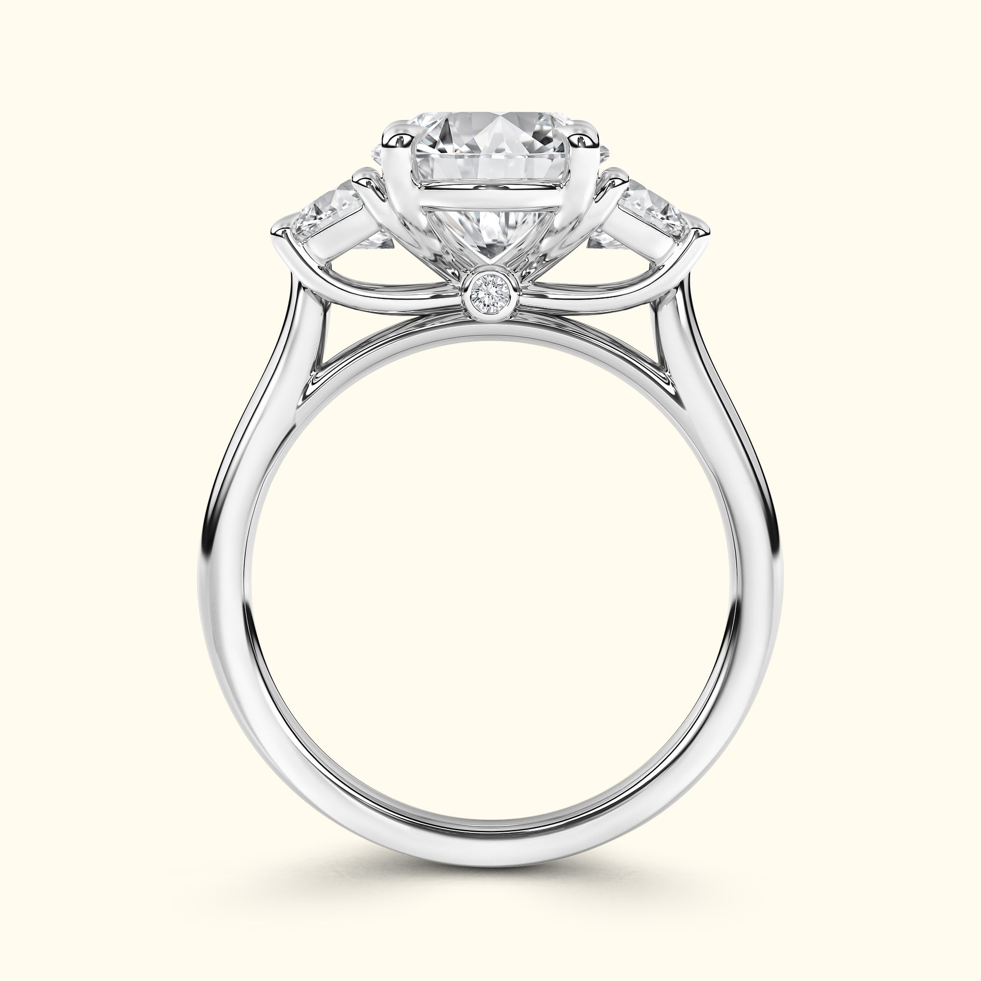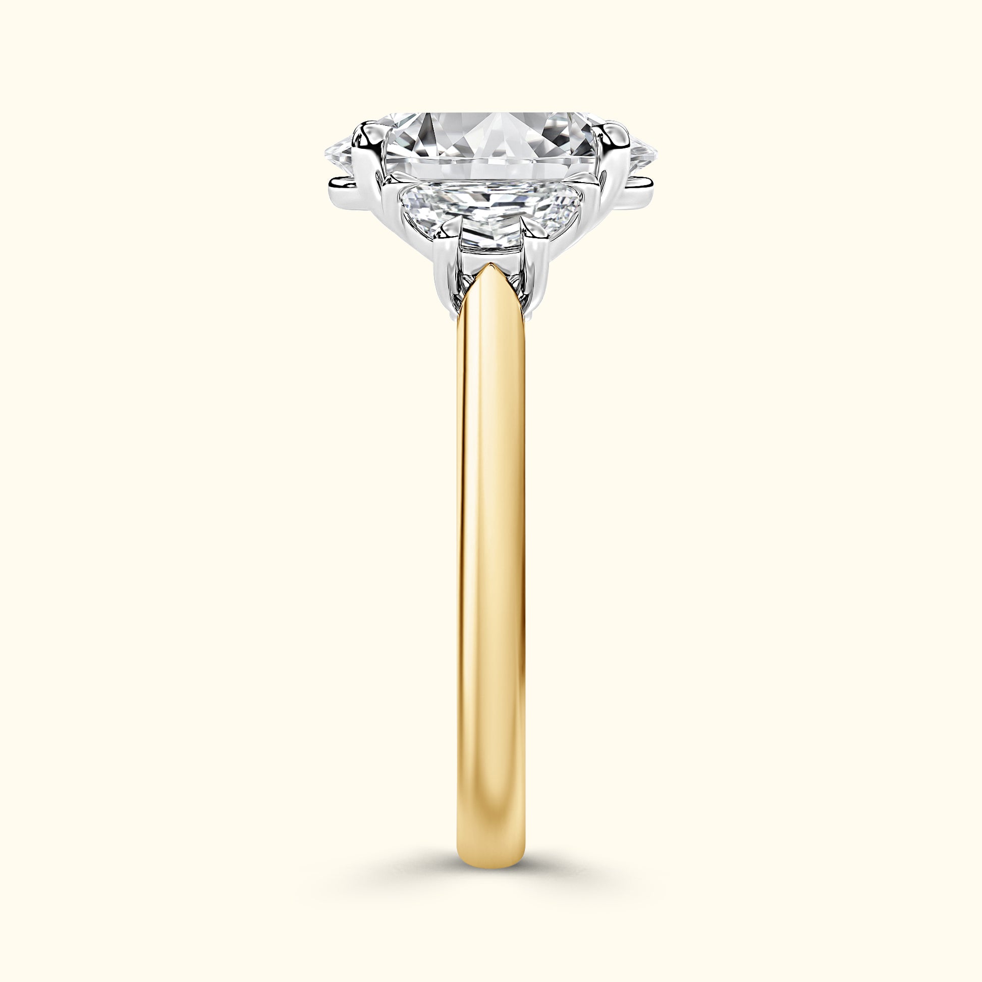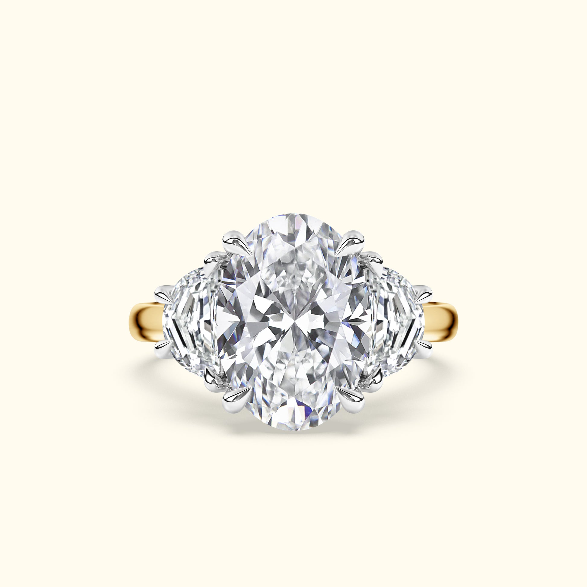 Graceful from every angle, this cathedral-set engagement ring features a dazzling oval center stone flanked by two radiant half moon diamonds. A hidden peekaboo diamond beneath the setting adds a secret touch of sparkle—because love is all about the little details.
