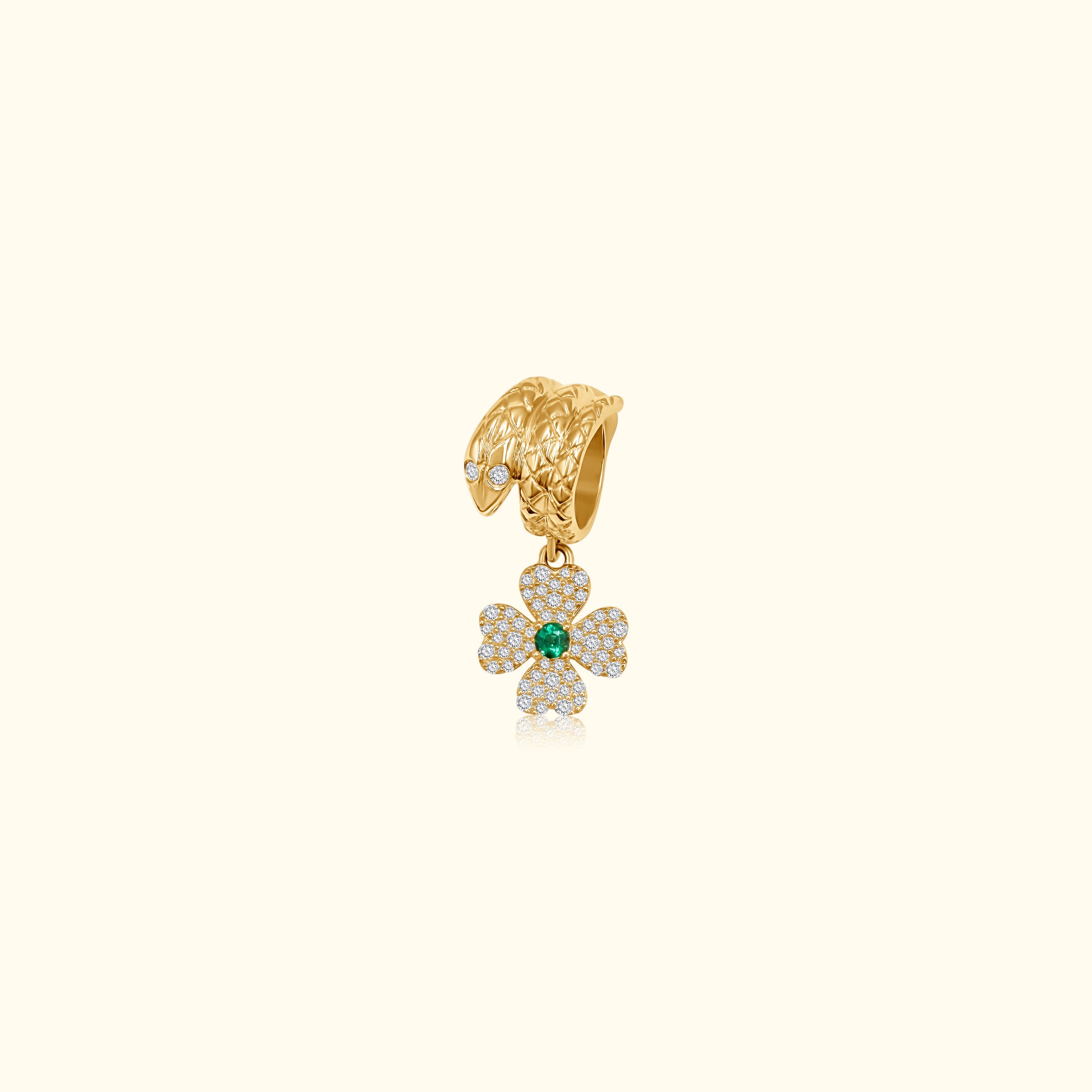 A little luck, a lot of sparkle—our Diamond Clover Pendant shines bright with pavé diamonds and a vivid emerald center, all topped off with a slinky snake bail for an unexpected twist. Charming, lucky, and just the right amount of wild.