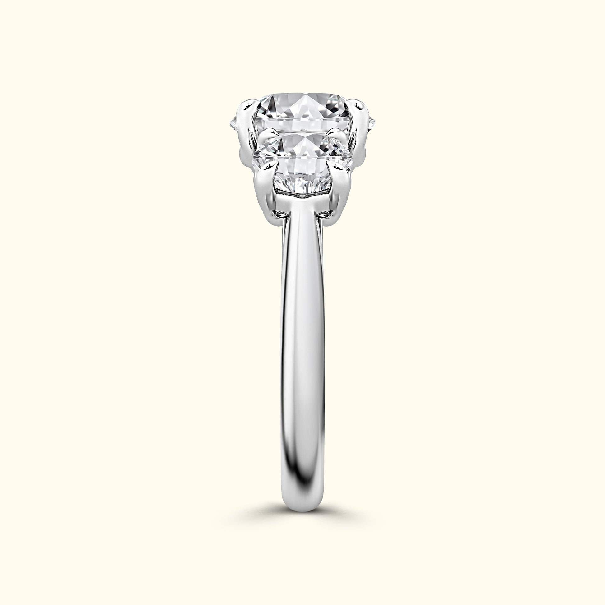 This stunning 3-stone ring features a larger round diamond at its center, flanked by two brilliant round si... Show more