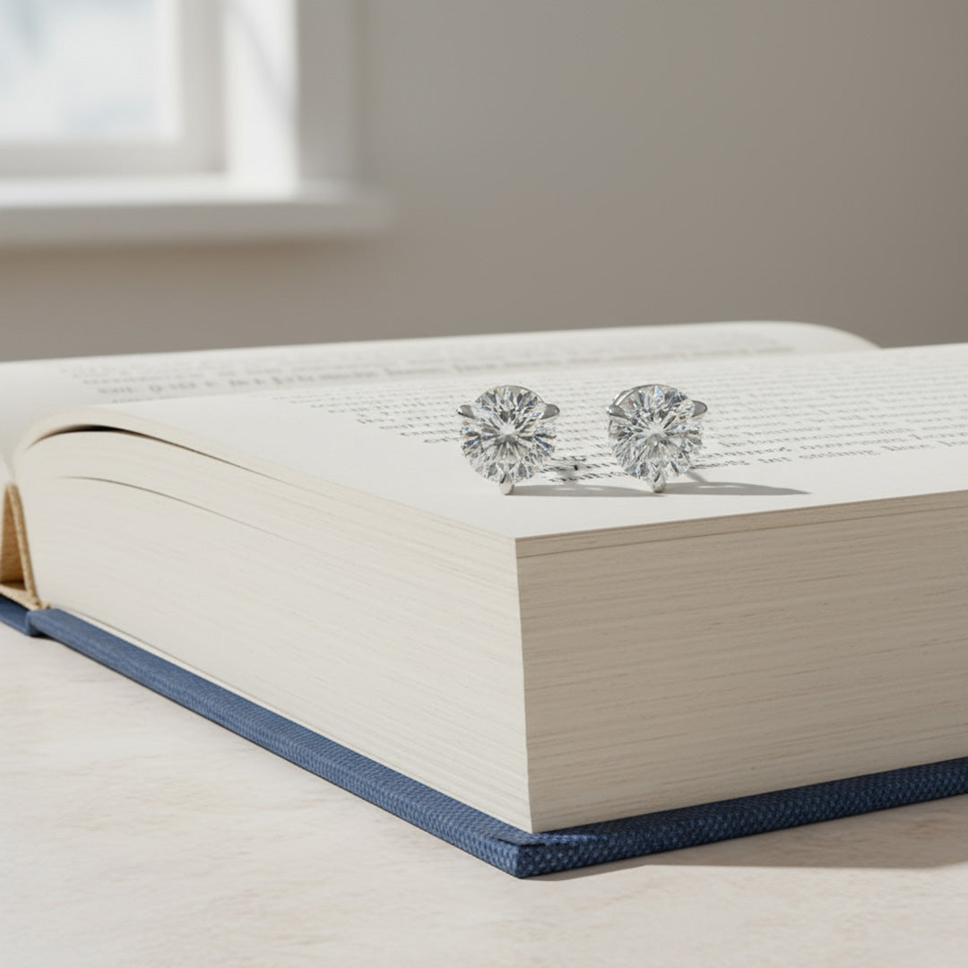 Featuring a pair of brilliant 1.50-carat round lab-created diamonds in a 3-prong 14k white gold setting, th... Show more