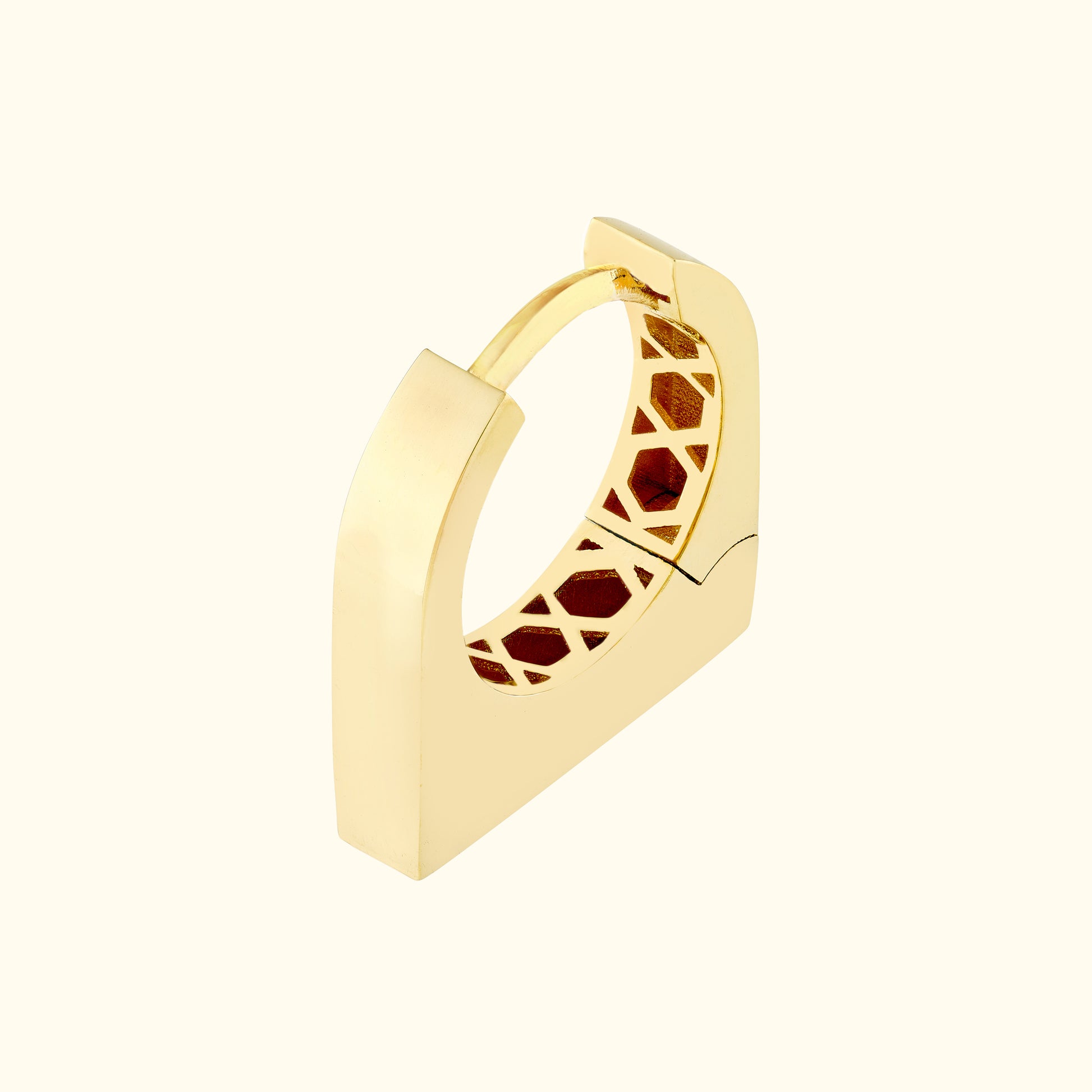 Dress your ear stack with unique 14K gold huggies. These rectangular shaped Thick Bar earrings are lightwei... Show more