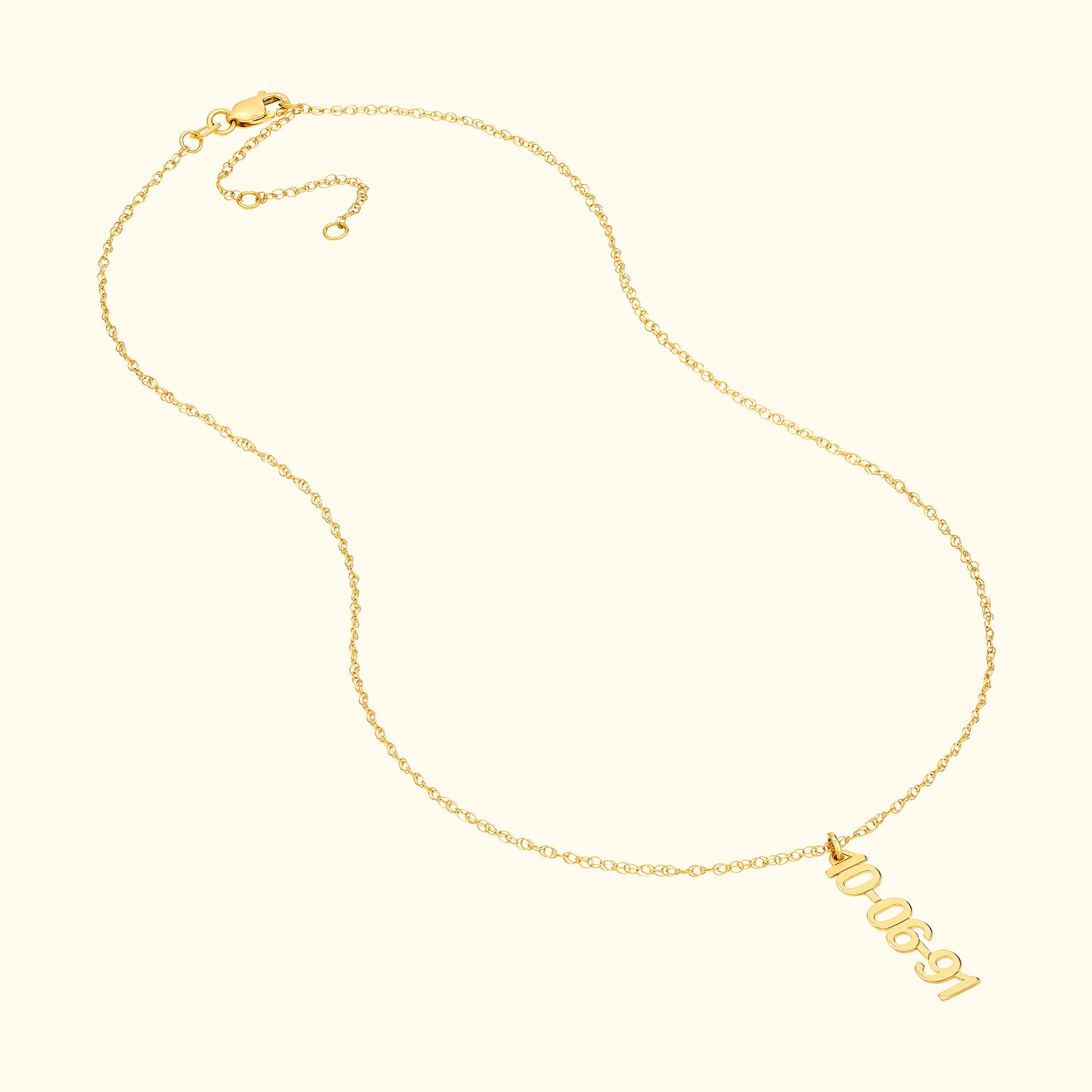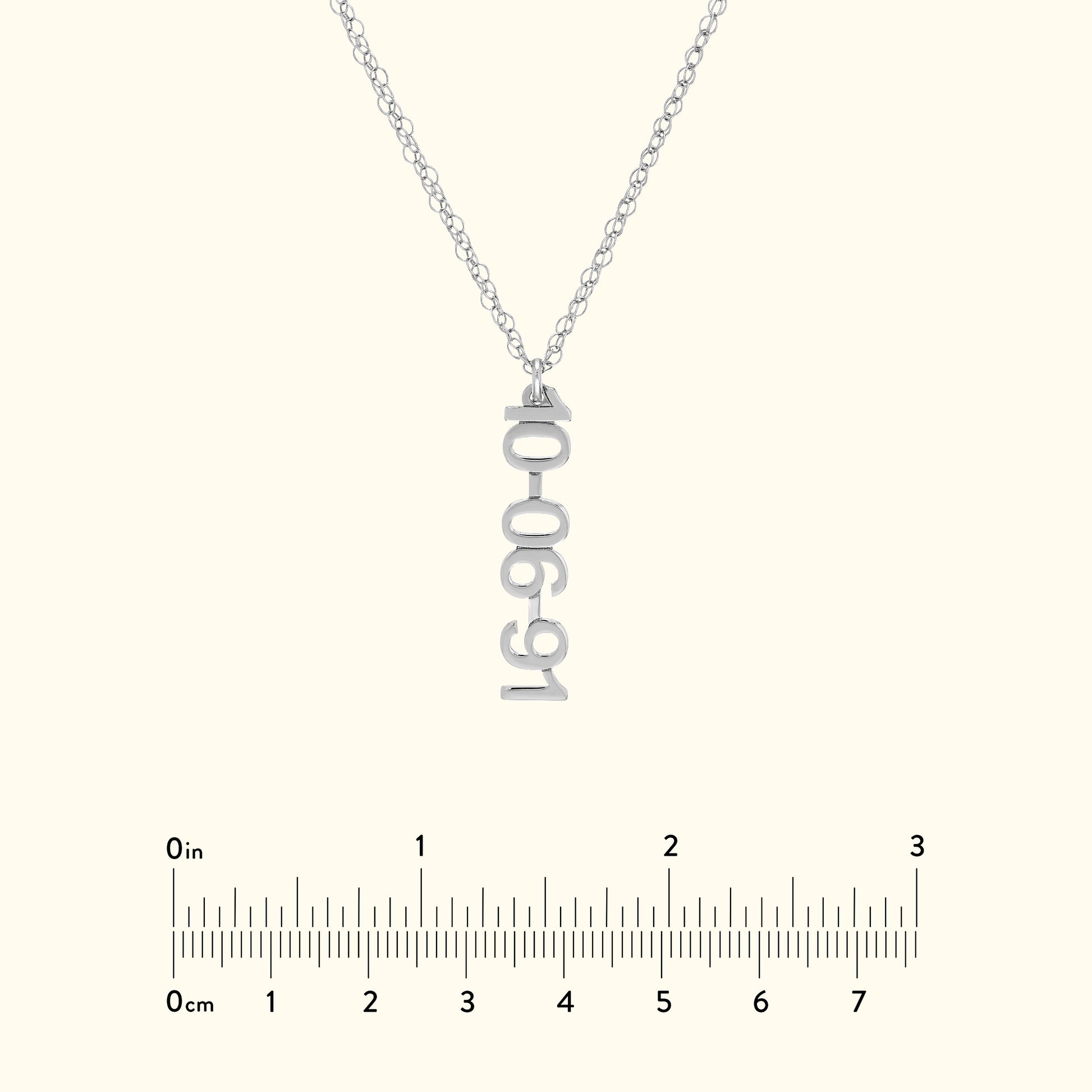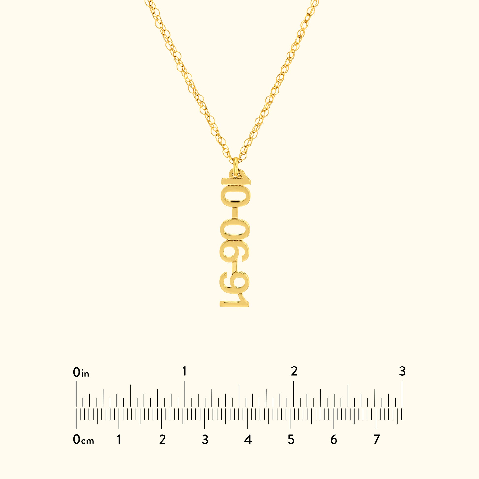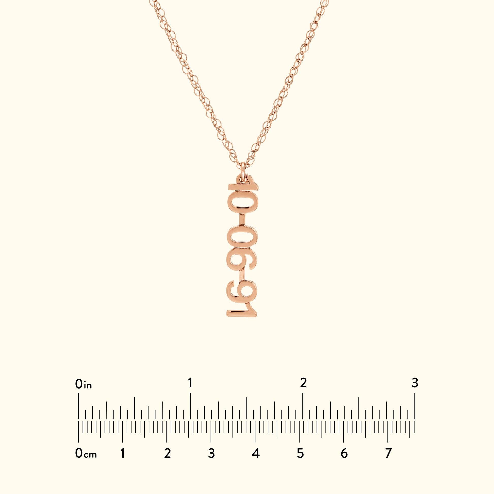 Use numerals to create meaning with this vertical block pendant. The necklace measures 7mm wide. Available in 14K yellow, white, and rose gold