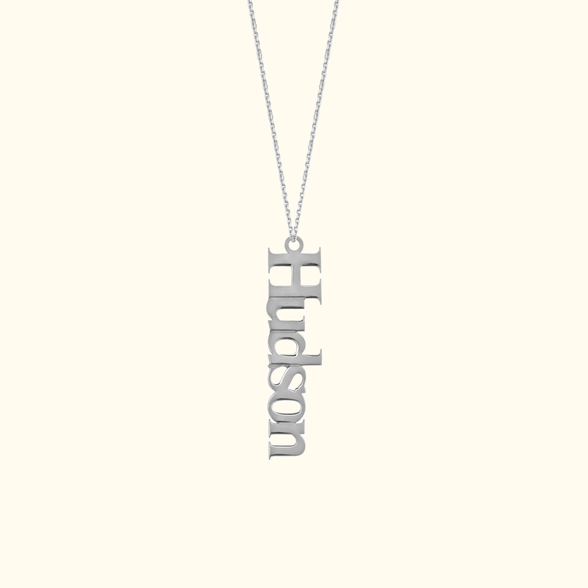 Design your dream necklace with this vertical typewriter pendant. Choose your own message, which will measure 7mm wide.