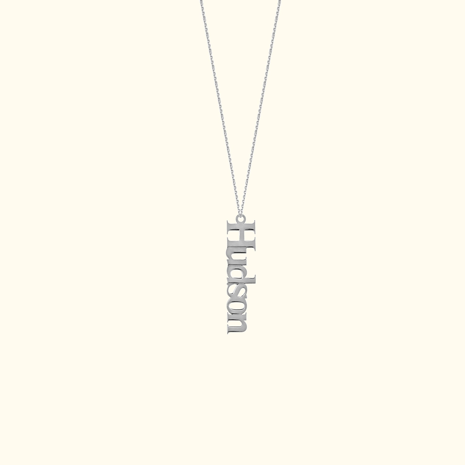 Design your dream necklace with this vertical typewriter pendant. Choose your own message, which will measure 5mm wide.